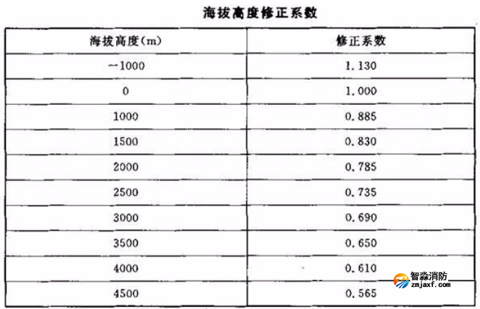 K——海拔高度修正系數,可參照下表取值。